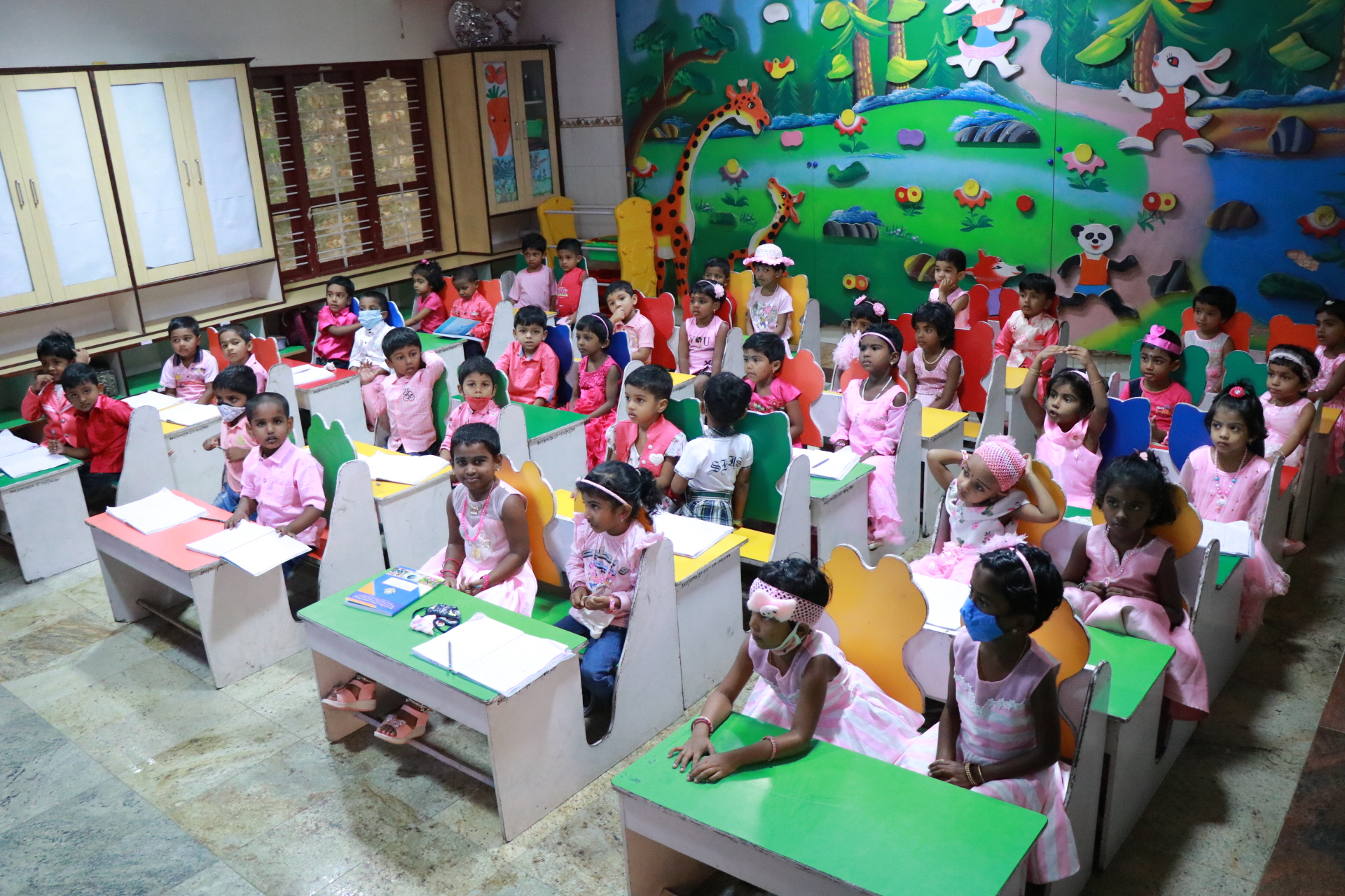 Every month a theme based colour day is observed. It’s wonderful to see the tiny tots spreading the colour by wearing beautiful dresses that light up the whole campus.