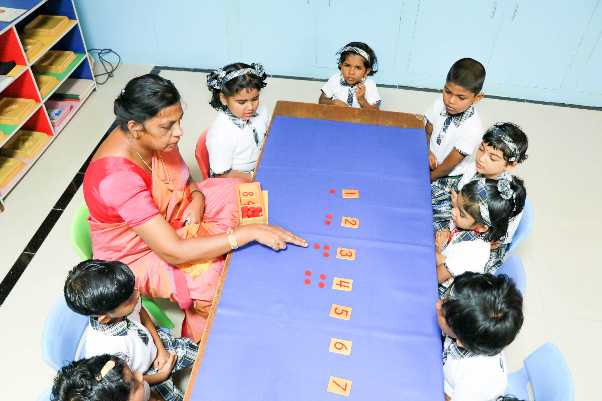 Our kindergarten curriculum is designed as per the Montessori Methodology we are pleased to feature a Montessori Lab which makes the young learners understand things and make use of articles in a creative way. Our MMI lab provides meaningful, engaging activities which lead to different domains of early childhood education.
