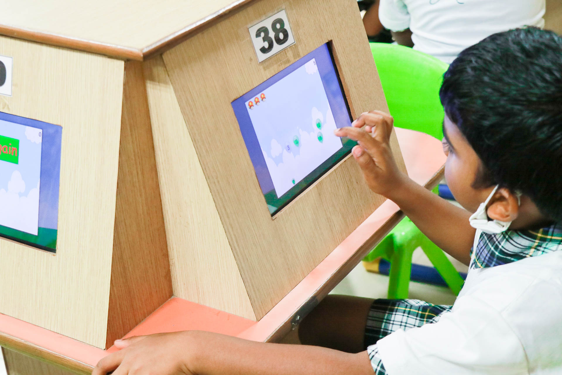 Our KG Wing is further strengthened by adapting to the most modern technology in the form of ‘TAB KID’, where all our children are exposed to Information and communication technology from an early age. These specific individual tabs used in the Tab room provide visual learning experiences individually.